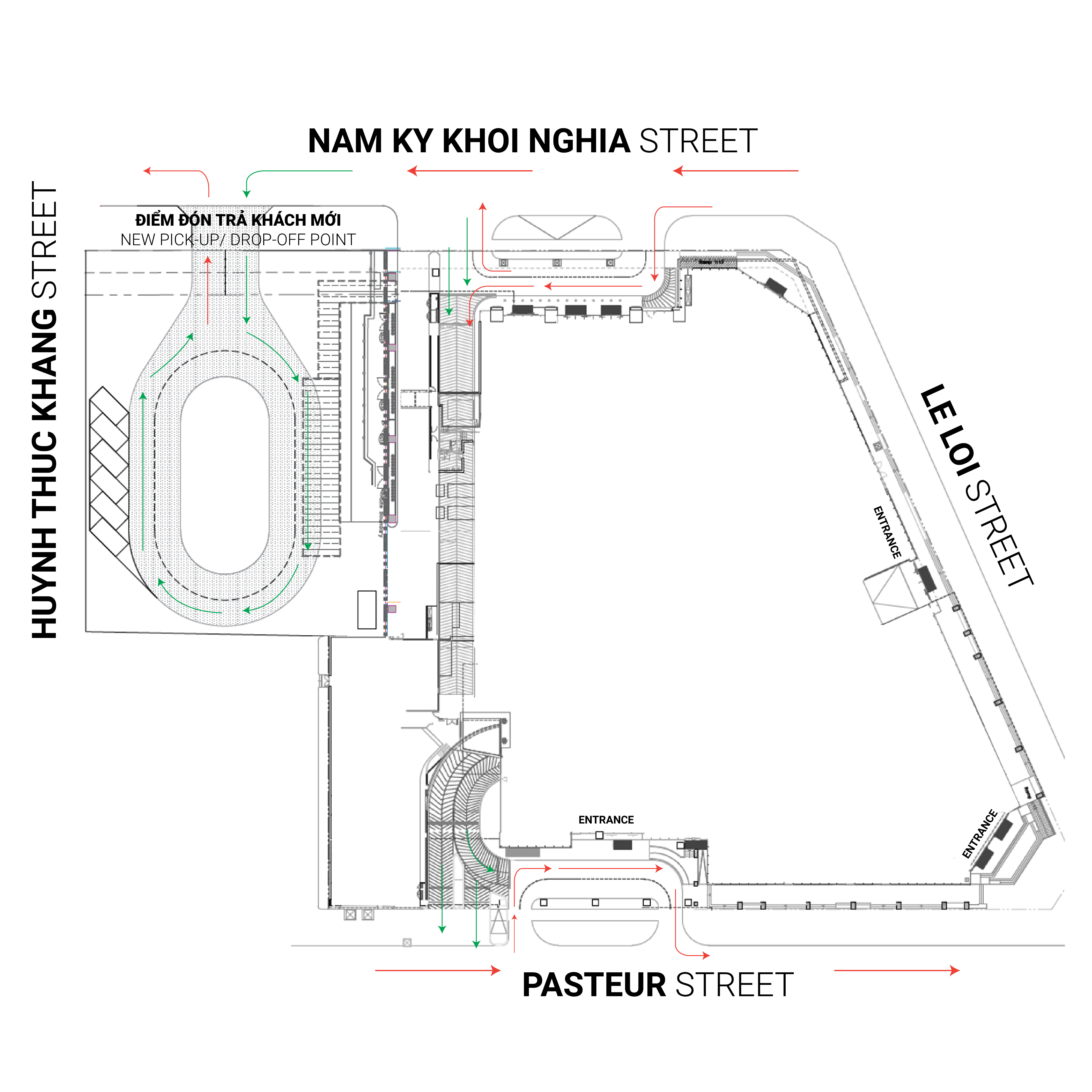 💚Khu vực đón trả khách (đường Pasteur): KHÔNG có gì thay đổi so với hiện tại.