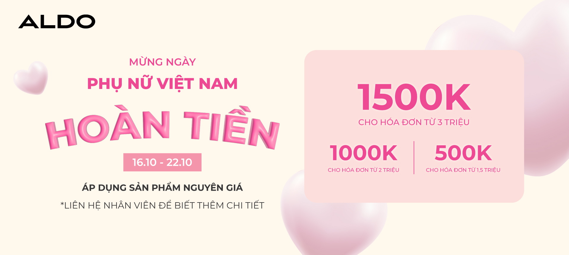 💕 Ngày 20/10 đã đến gần, cùng ALDO gửi tặng những món quà xinh đẹp và ý nghĩa đến một nửa yêu thương với ƯU ĐÃI ĐẶC BIỆT: